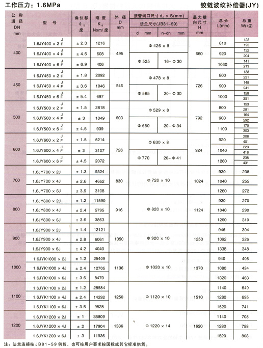 鉸鏈波紋補(bǔ)償器(JY)參數(shù)7