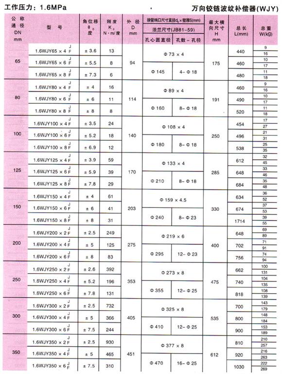 萬向鉸鏈波紋補(bǔ)償器(WJY)參數(shù)6
