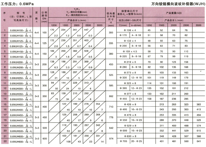 萬向鉸鏈橫向波紋補(bǔ)償器(WJH)產(chǎn)品參數(shù)1