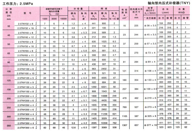 軸向型內(nèi)壓式波紋補(bǔ)償器(TNY)參數(shù)15