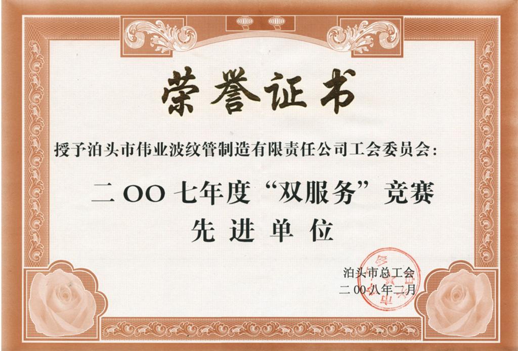 河北偉業(yè)波紋管公司雖然榮獲了許多的榮譽(yù)和獎項,但是我們深知這些榮譽(yù)和獎項是客戶給予河北偉業(yè)公司的信賴和支持,公司領(lǐng)導(dǎo)經(jīng)常教育我們面對榮譽(yù)要不驕不躁,時刻把客戶放在_位,嚴(yán)把質(zhì)量關(guān)。相信河北偉業(yè)波紋管公司在這樣的領(lǐng)導(dǎo)班子帶領(lǐng)下_會邁向新的臺階。