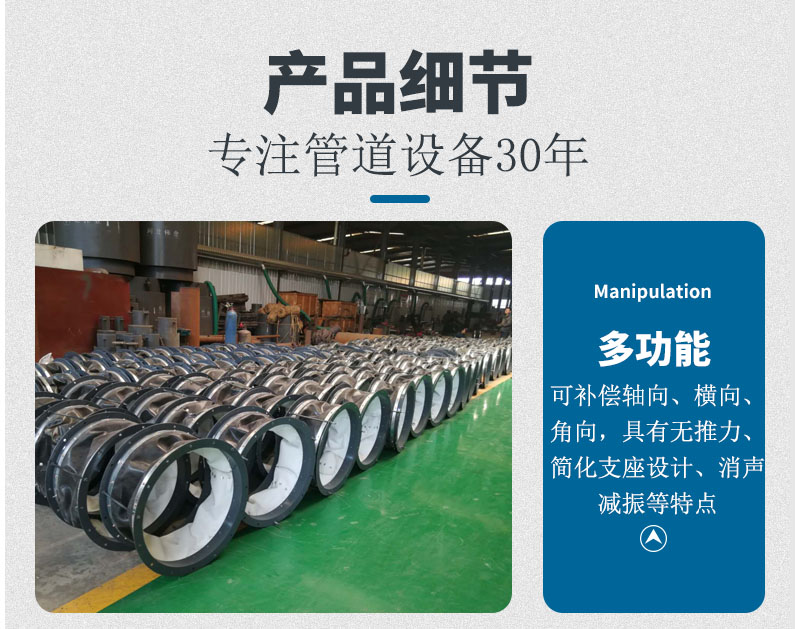1、補(bǔ)償熱膨脹:非金屬伸縮節(jié)可以補(bǔ)償多方向,大大優(yōu)于只能單式補(bǔ)償?shù)慕饘傺a(bǔ)償器。